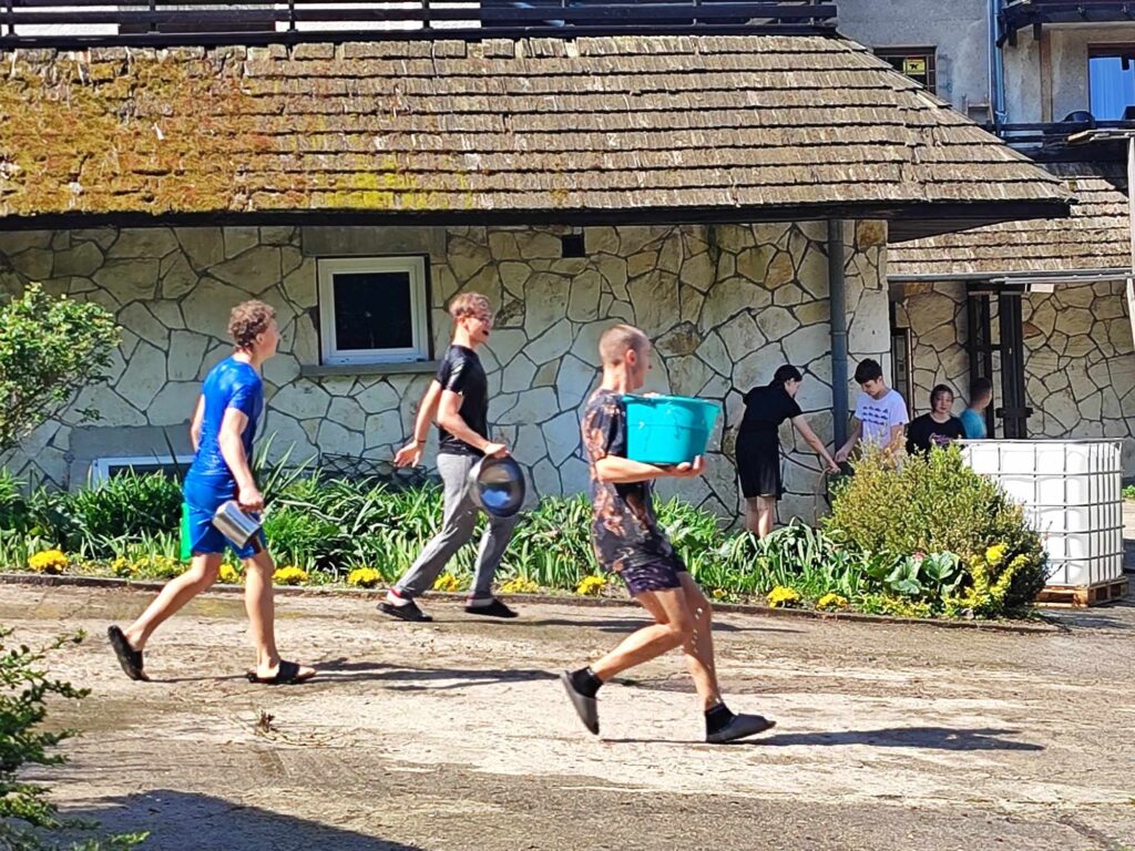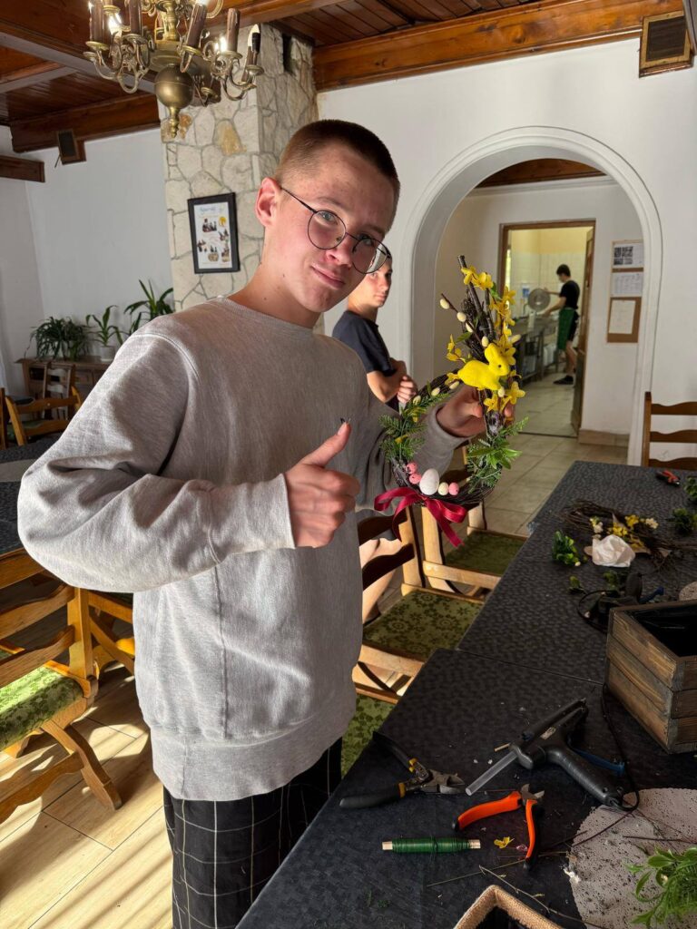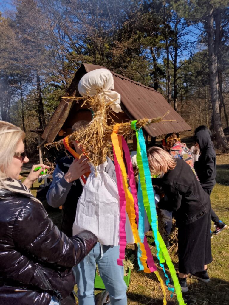 Po warsztatach odpoczęliśmy chwilę w cieniu drzew, a następnie wyruszyliśmy w drogę powrotną leśną ścieżką, prowadzącą przez malownicze tereny. Był to idealny moment, by porozmawiać, wsłuchać się w odgłosy przyrody i nacieszyć się spokojem okolicy.